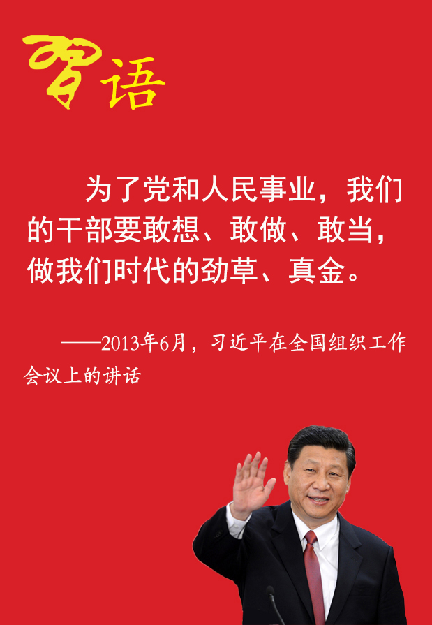 “疾風(fēng)識勁草,烈火見(jiàn)真金?!睘榱它h和人民事業(yè),我們的干部要敢想、敢做、敢當,做我們時(shí)代的勁草、真金。