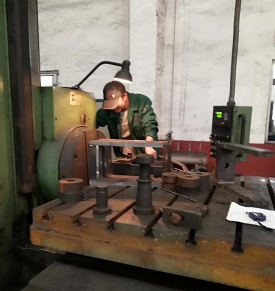 我們的女員工充分詮釋了“女漢子”的含義,一人同時(shí)操作四臺鋸床,同時(shí)發(fā)力,吊裝、安防、裝夾、輸入參數、開(kāi)動(dòng)運行。在她的精準操作下,四臺設備你追我趕,吹響進(jìn)攻號角。各式車(chē)床飛速旋轉、鐵屑四濺,暗青色的毛坯在刀尖下逐漸脫去外衣,閃現出耀眼的鋼鐵本色,車(chē)燈燈光透過(guò)車(chē)工臉上晶瑩剔透的汗珠,折射在工件上,色彩交相輝映。專(zhuān)注、堅定的眼神注視著(zhù)刻度盤(pán)和游標卡尺,在他們眼里,一絲一毫的偏差都是不可逾越的紅線(xiàn)。銑床、鏜床、龍門(mén)刨飛轉的刀盤(pán)迅捷滑過(guò)毛坯表面,鐵屑在空中飛出美麗的“華爾茲”。焊光閃閃,氣割在鋼板上平穩橫移,一件件工件應聲而落,圖紙上的一個(gè)個(gè)線(xiàn)條在鋼板上精準實(shí)現。